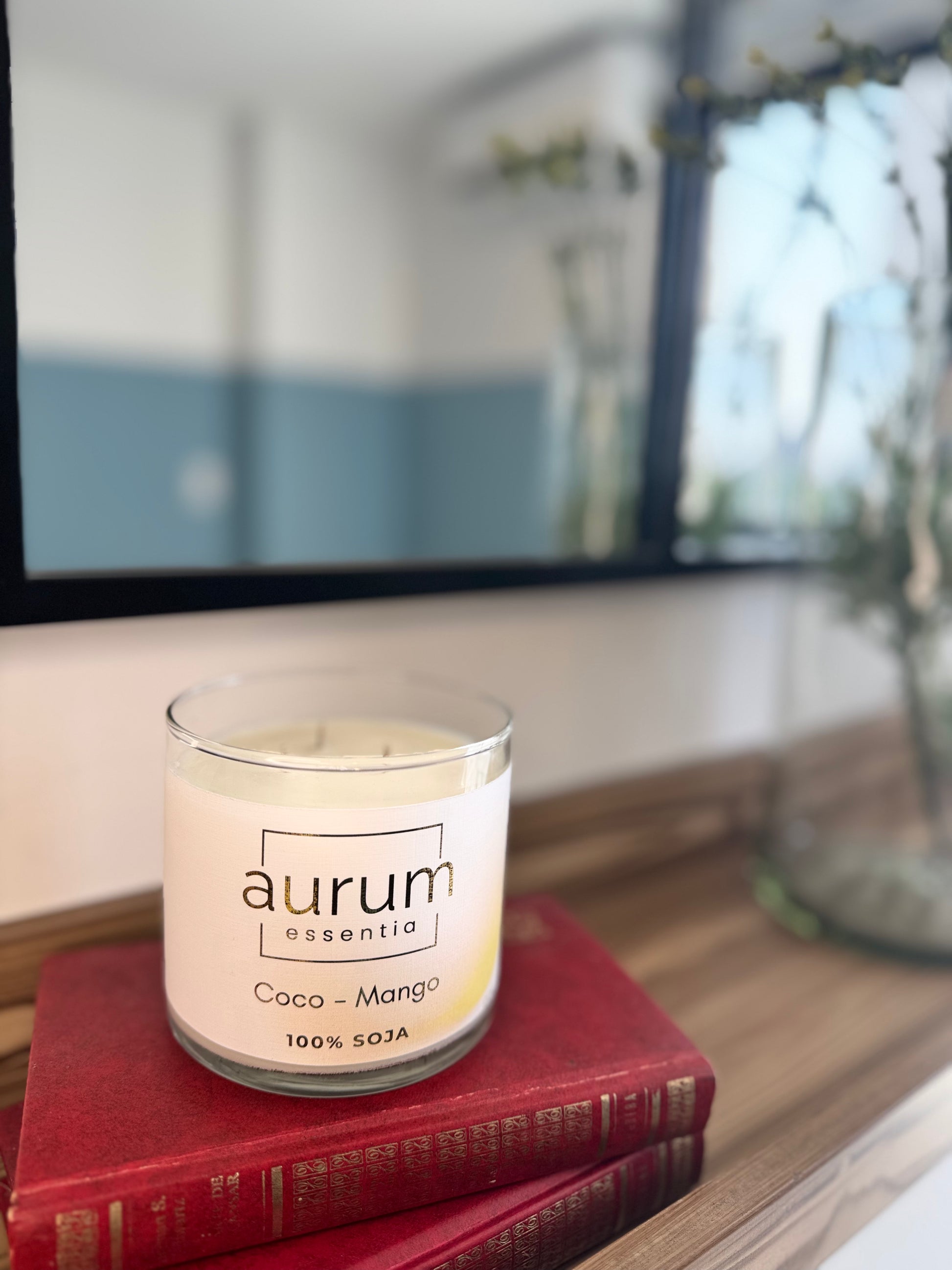 Coco y mango: la dupla perfecta para robarte un suspiro. Aurum coco mango no solo perfuma tu espacio, lo llena de luz y energía bonita. Es un cóctel de aromas que te abraza, te relaja y te enamora sin esfuerzo.